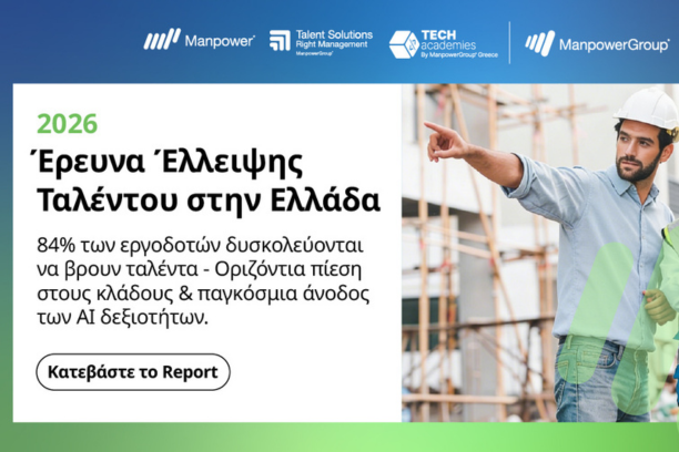 Αθήνα, 2 Απριλίου 2026 Η Έρευνα Έλλειψης Ταλέντου 2026 της ManpowerGroup αναδεικνύει τη διαρθρωτική πρόκληση...
